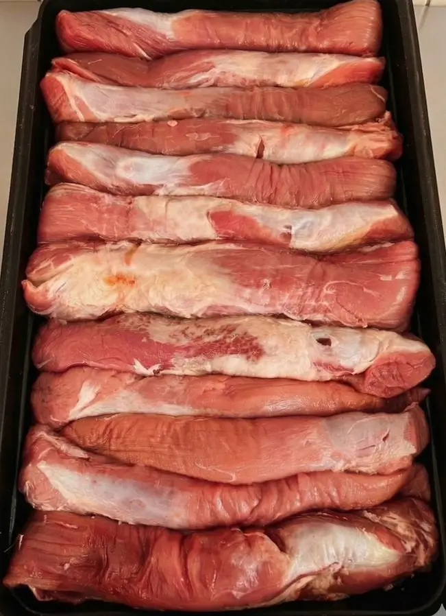 Самая ценная, постная и нежная часть свинины. В вырезке практически нет жира, зато она обладает мягкой текстурой и готовится в считанные минуты. Это идеальный выбор для изысканных медальонов, сочного жаркого или диетического питания. Мы предлагаем только охлаждённый продукт, зачищенный от жил и плёнок - вы получаете чистое мясо премиального качества, готовое к приготовлению.